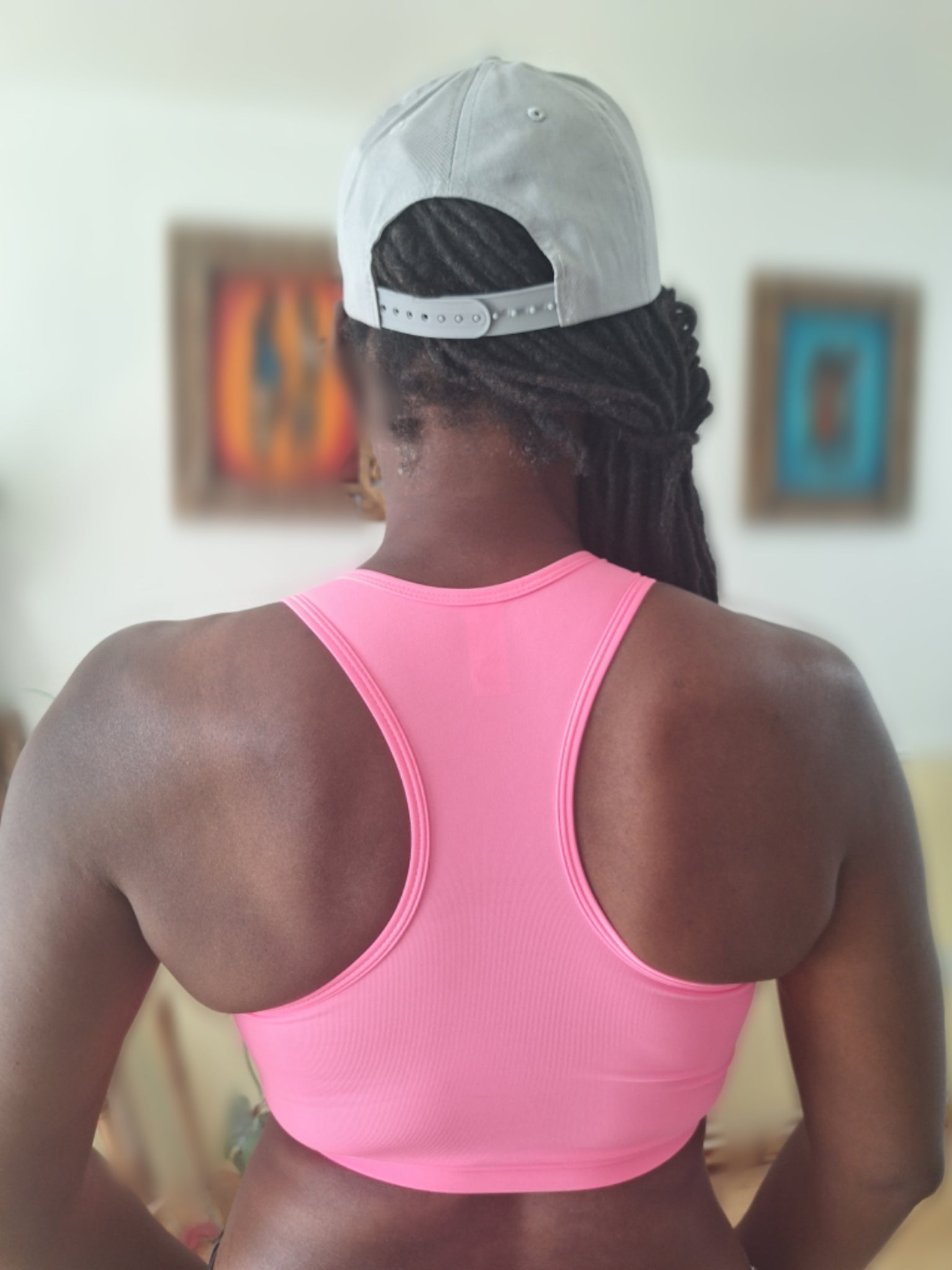 The stretch fabric crop moves with your body, and the CoolFit fabric keeps you dry and comfortable, while the racer back design allows you the freedom of movement [so you can maximise your flow]. 🩷